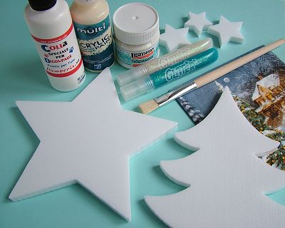Ajtó vagy ablakdíszként is felhasználható karácsonyi dekorációkat készíthetünk a könnyen festhető és szalvétatechnikával is jól díszíthető dekorhab formákból.