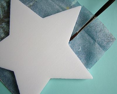 A szalvétát nem kell előre rászabni a csillag felületére, hiszen száradás után, utólag sokkal könnyebb a felesleges részeket eltávolítani.