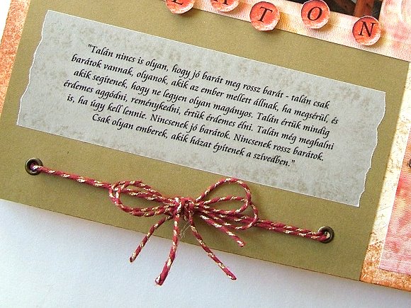 A scrapbooking kiegészítő díszítő anyagai közül a kenderzsineg az, amely nem hiányozhat egyetlen hagyományos albumkészítő készletéből sem. Ennek felhasználása számtalan egyedi megoldást, trükköt rejt magában.