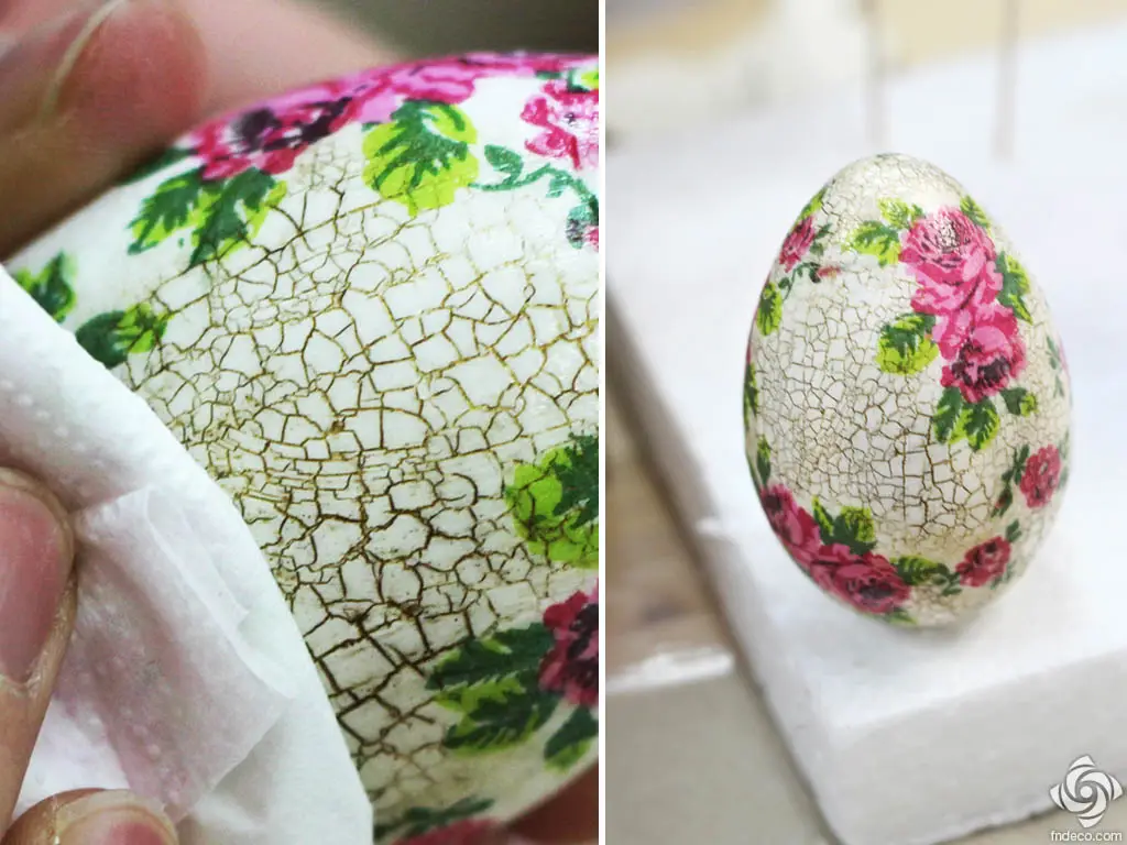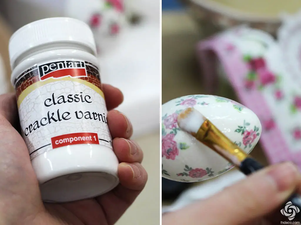 8. Utolsó lépések következnek, védő rétegként fényes lakkal kenjük át az egész tojást, és hagyjuk megszáradni.