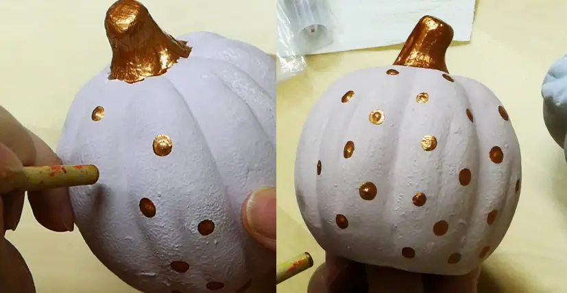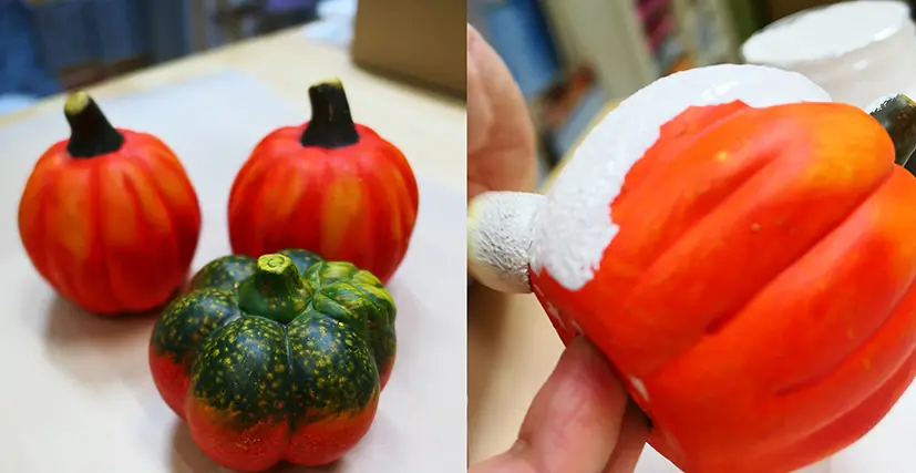 Mutatunk egy inspirációt a megszokott narancsos-sárgás őszi dekoráció helyett. Kerámia dísztököket festettünk át kréta festékkel, és metál festékkel.